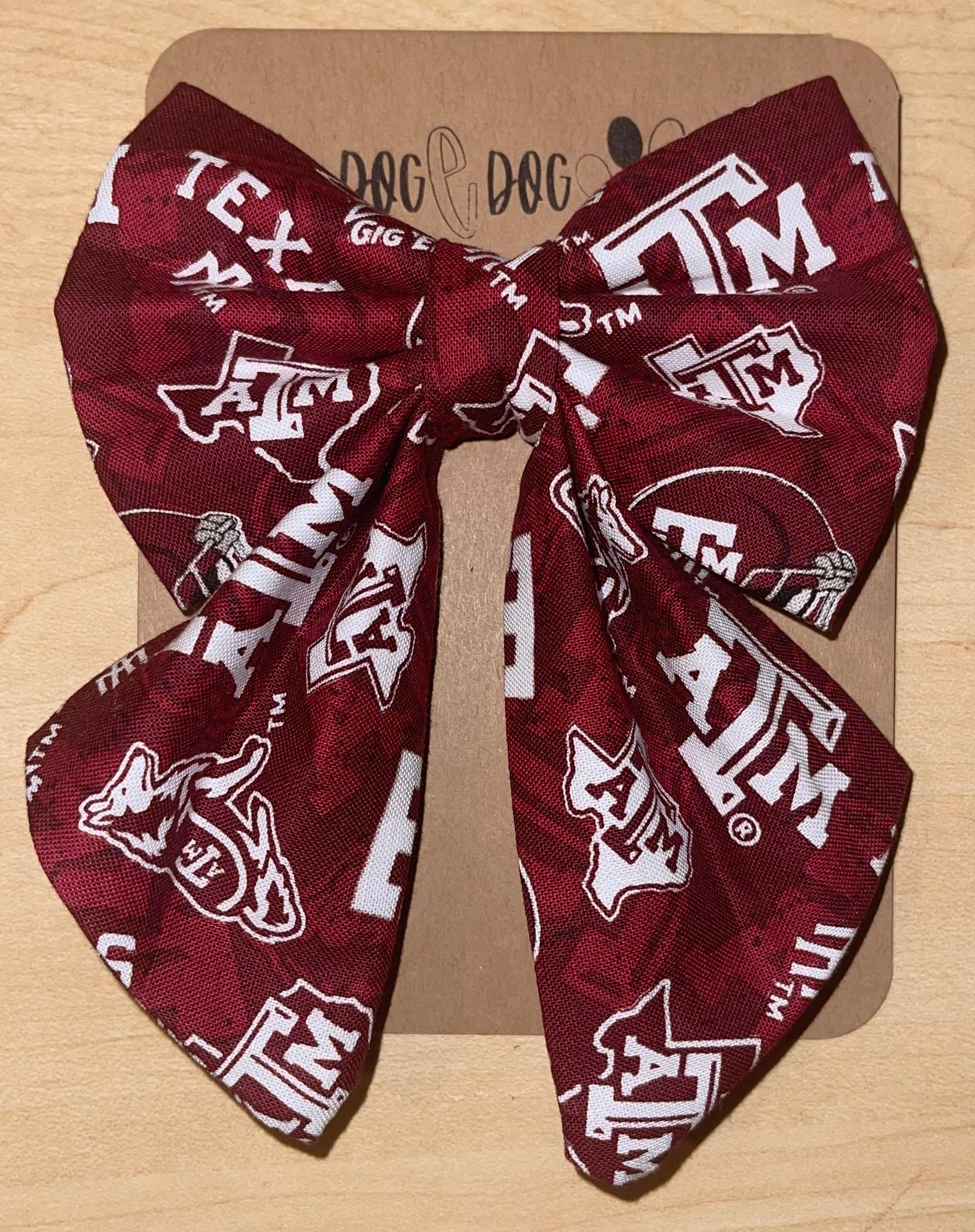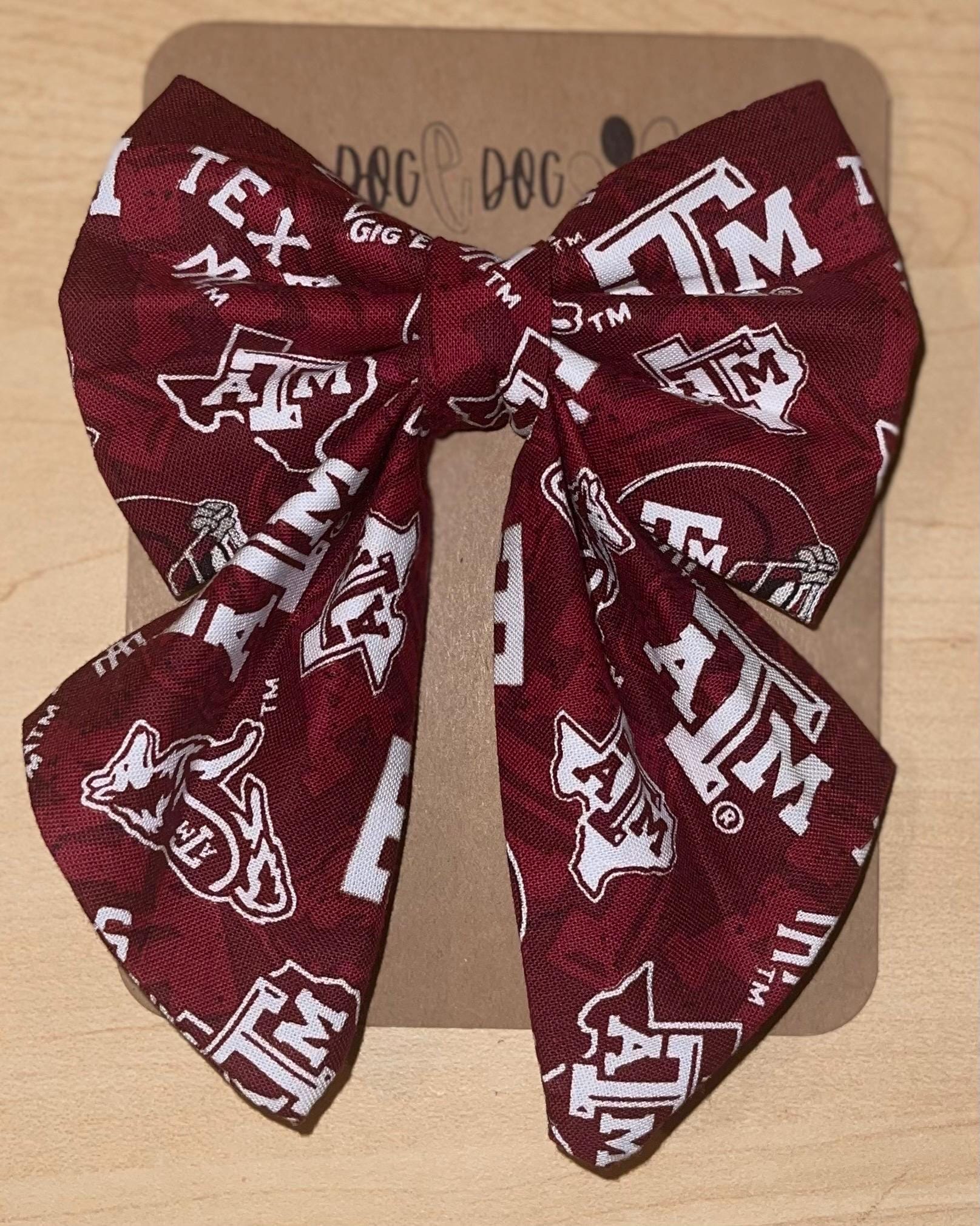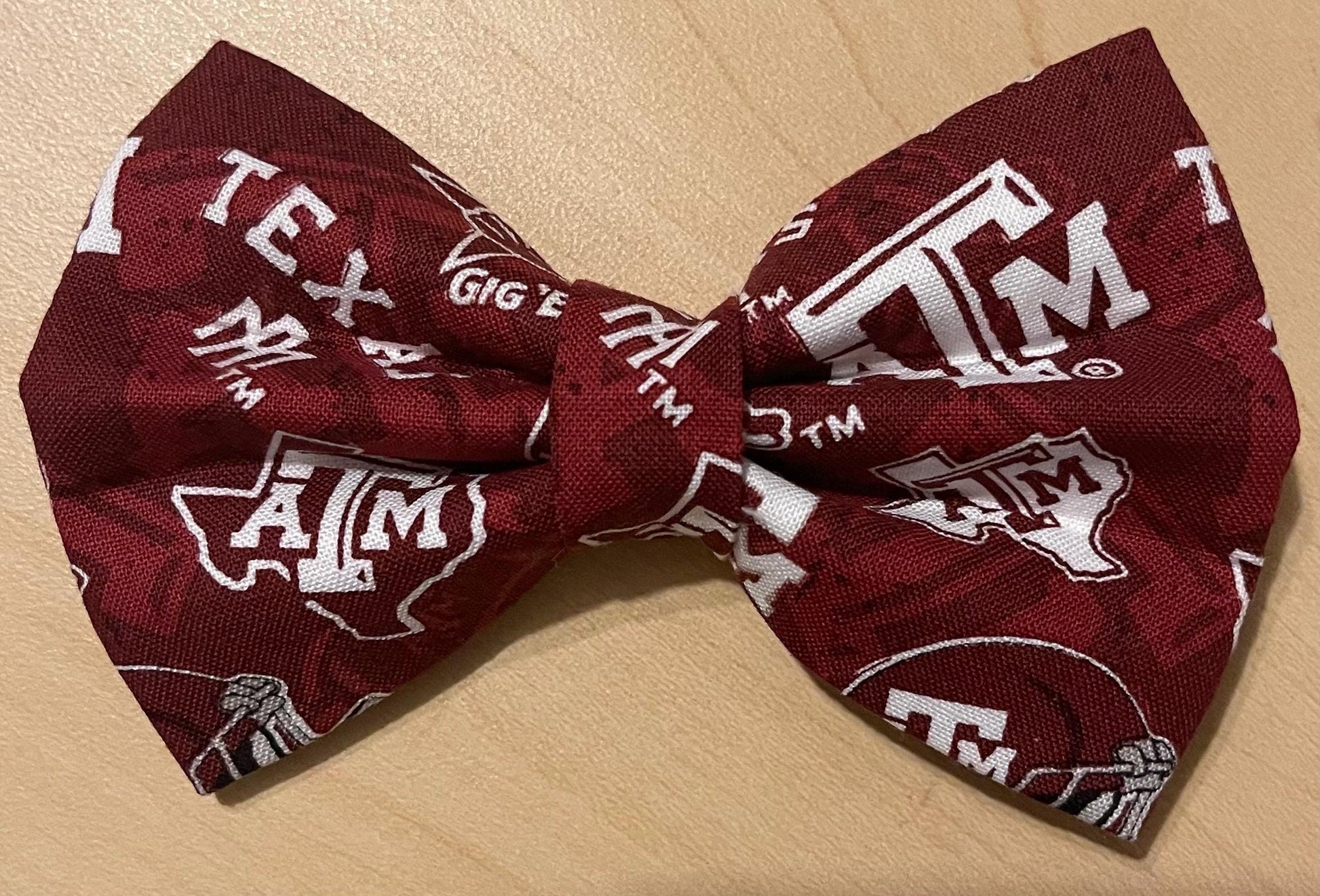 Show off your fur baby's school spirit with collegiate wear! Whether you're a die-hard sports fan, the Texas kind, we have a variety of designs to suit every style. Crafted from high-quality materials, our collegiate wear will have your baby looking paw-sitively adorable and full of team pride! 🐾Elastic straps allow you to run the collar through Can fit up to a 1.75” collar depending on the size purchased 🐾All items are handmade with love and some imperfections! Bow tie pattern may vary depending on the cut if the fabric! 🐾Laundry Care Mesh laundry bag for delicate items, hand wash, or spot clean Air Dry Only 🐾Caution Please do not leave any fur baby unattended while accessorized! 🐾Sizes (approximate) Bow Tie: Small 2.75” x 2.25” Medium 4.25” x 3” Large 6” x 4.25” Sailor Bow: Small 4” x 4” Medium 6” x 5” Large 9” x 6.5” 🐾!!ALL SALES ARE FINAL!!🐾 Thank you for shopping with Dog E Dog World