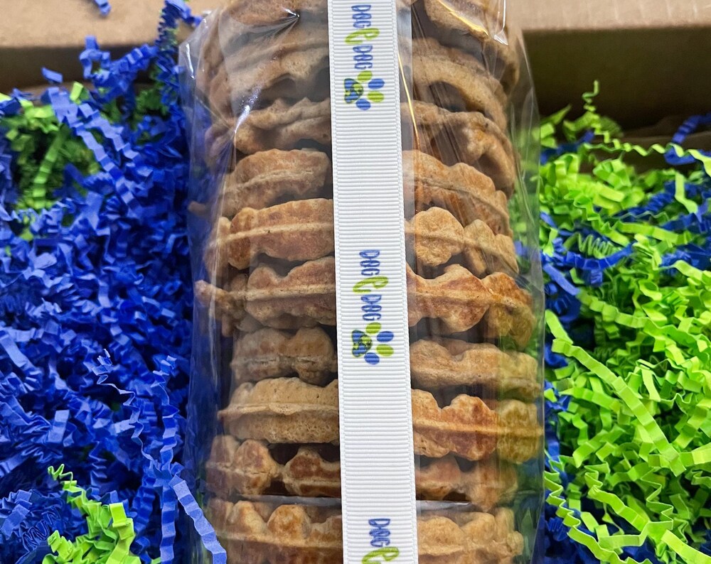 Berry Blue Woofles, featuring the delicious flavor of blueberries, are available in three sizes: 4” regular, 2” mini, and wooflets for training.