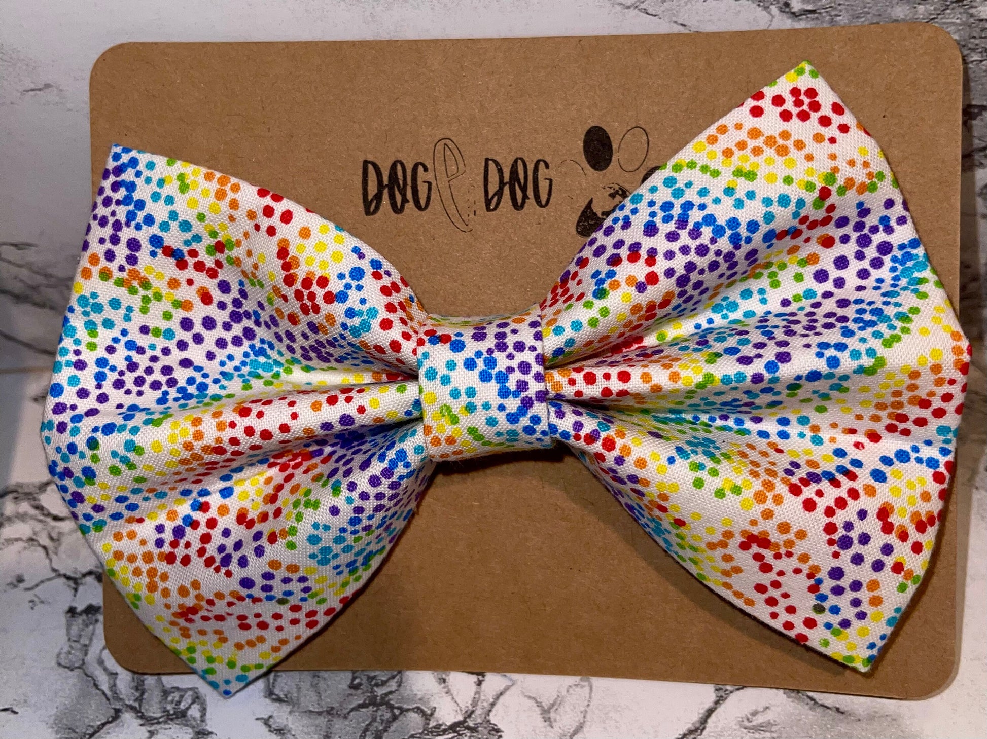 Make your fur baby stand out in style with this colorful and playful Rainbow Polka Dots!. Part of the Dots, Dots, and more Dots collection, this bow tie is perfect for dogs and cats alike.