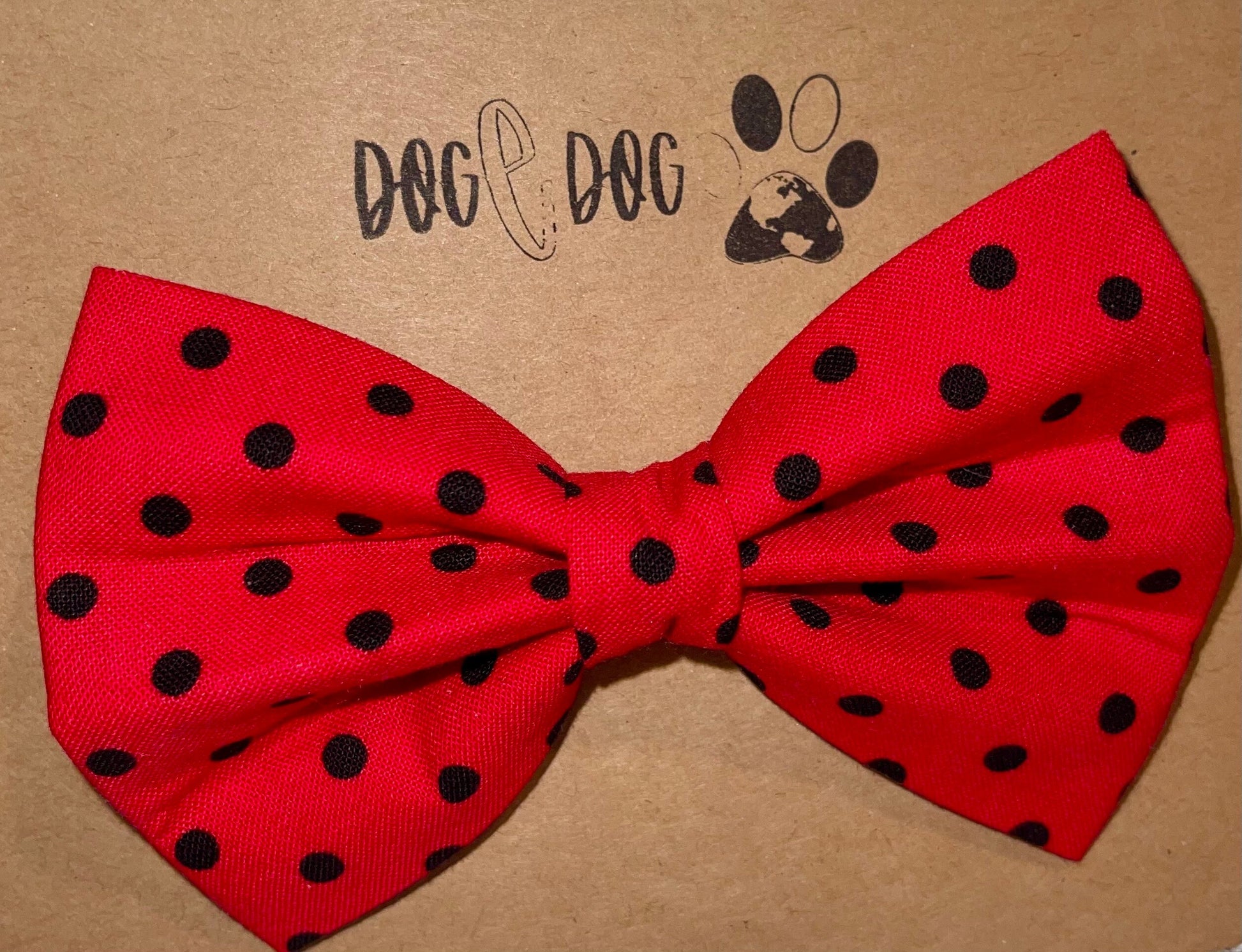 Add a touch of whimsy to your fur baby’s outfit with Dog E Dog World's Pet Bow Tie - Red with black polka dots. This charming accessory is perfect for both cats and dogs, and it provides a ladybug-inspired look that will make your pets stand out.