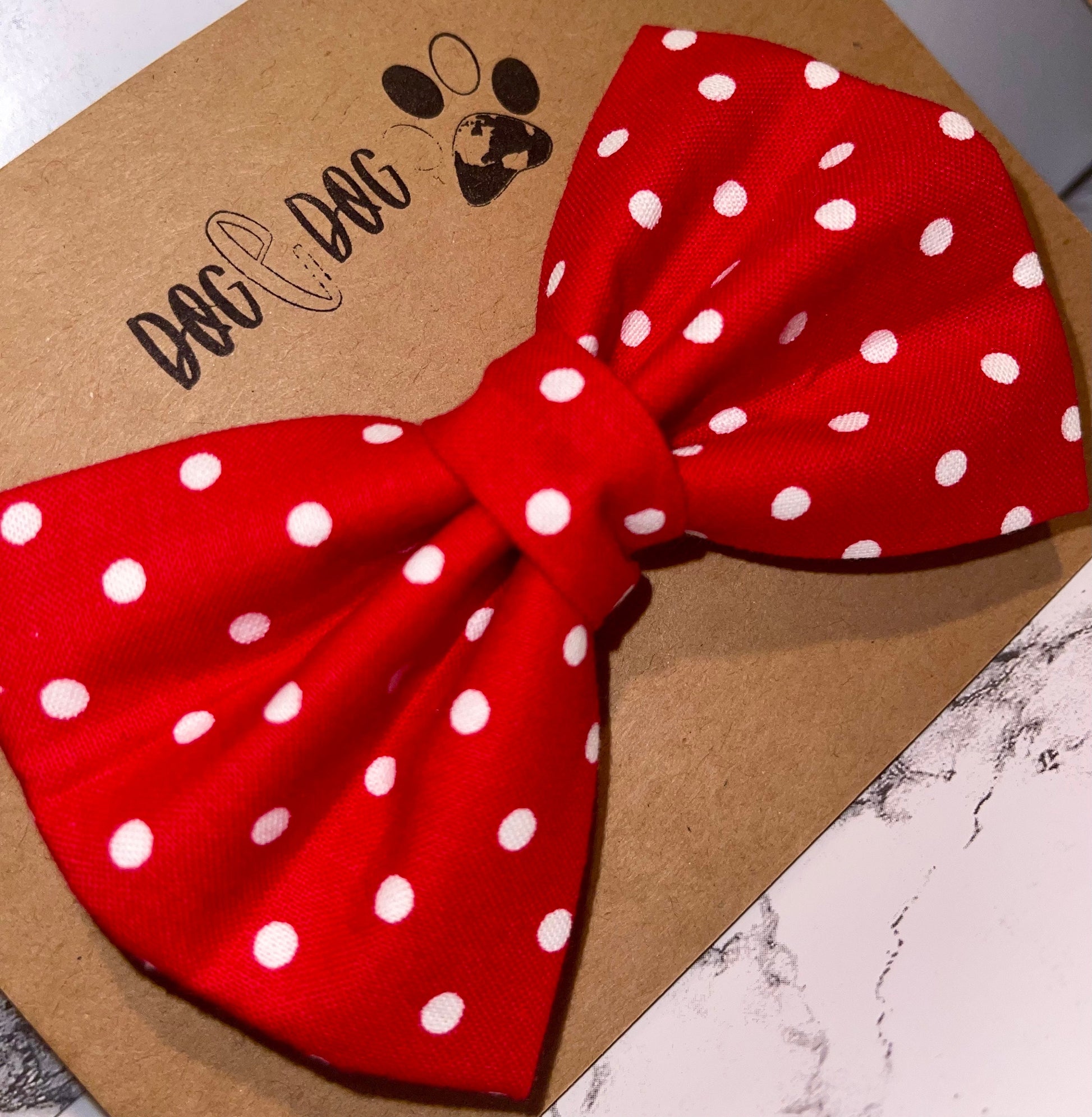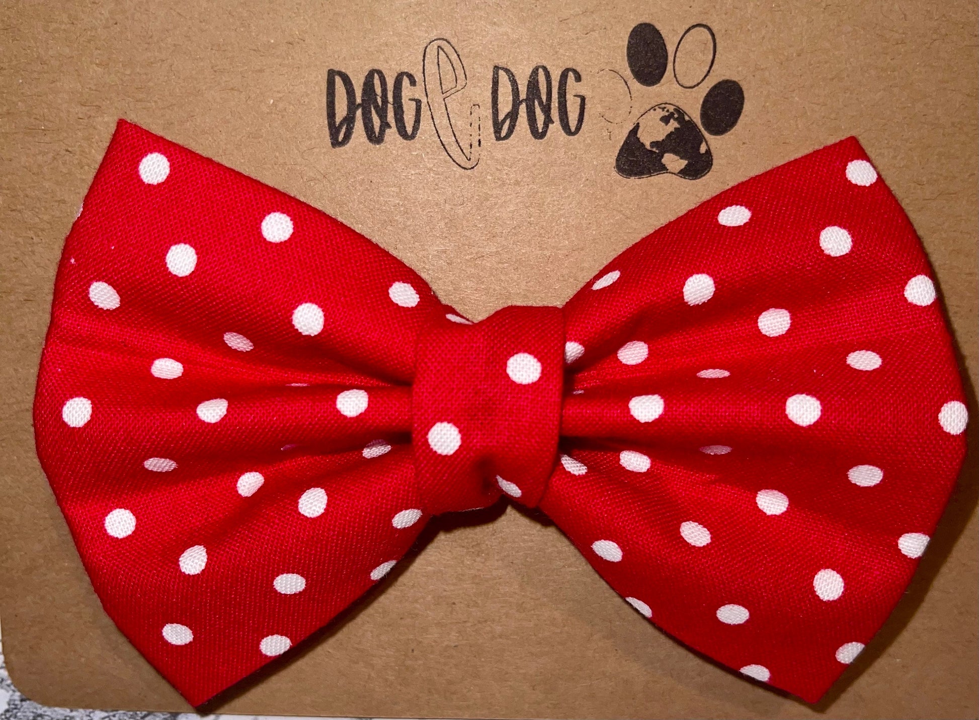 Upgrade your fur baby’s look today with this fantastic red and white polka dot bow tie!