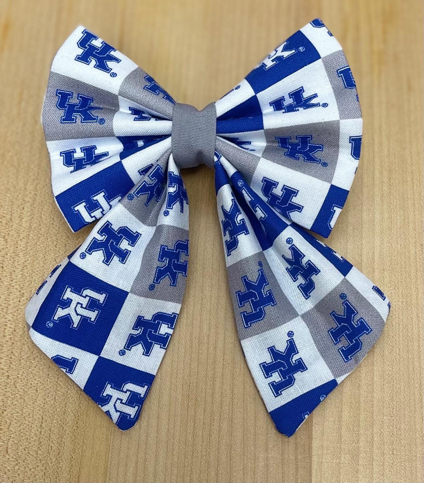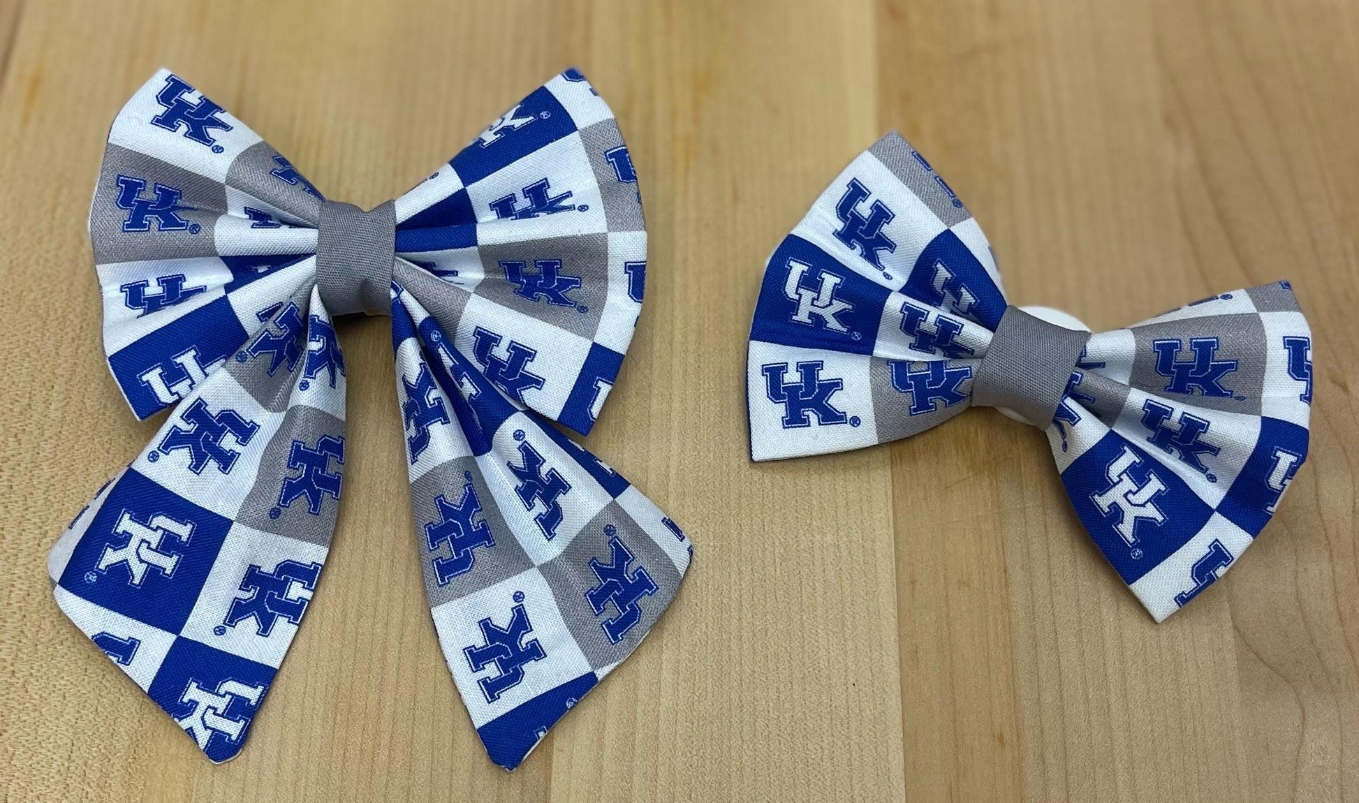 Show off your pride with our exclusive collegiate wear! Made with quality materials in the iconic blue and grey colors, these outfits are perfect for your fur baby to rock that school spirit everywhere you go. Get your paws on the latest gear now! 🐾Elastic straps allow you to run the collar through Can fit up to a 1.75” collar depending on the size purchased 🐾All items are handmade with love and some imperfections! Bow tie pattern may vary depending on the cut if the fabric! 🐾Laundry Care Mesh laundry bag for delicate items, hand wash, or spot clean Air Dry Only 🐾Caution Please do not leave any fur baby unattended while accessorized! 🐾Sizes (approximate) Bow Tie: Small 2.75” x 2.25” Medium 4.25” x 3” Large 6” x 4.25” Sailor Bow: Small 4” x 4” Medium 6” x 5” Large 9” x 6.5” 🐾!!ALL SALES ARE FINAL!!🐾 Thank you for shopping with Dog E Dog World